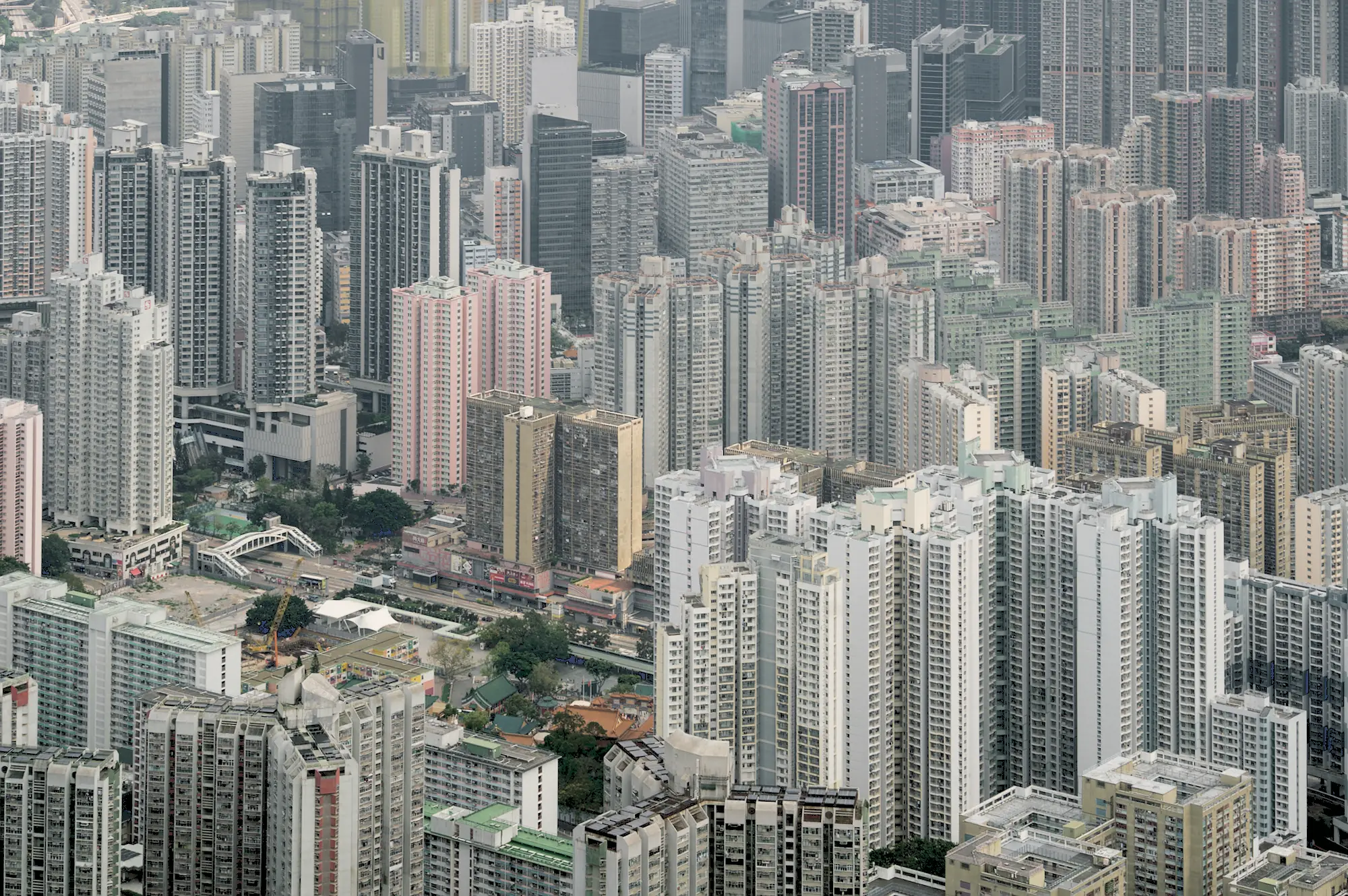 The skyline extends inward rather than upward, filling the frame with continuous habitation.
