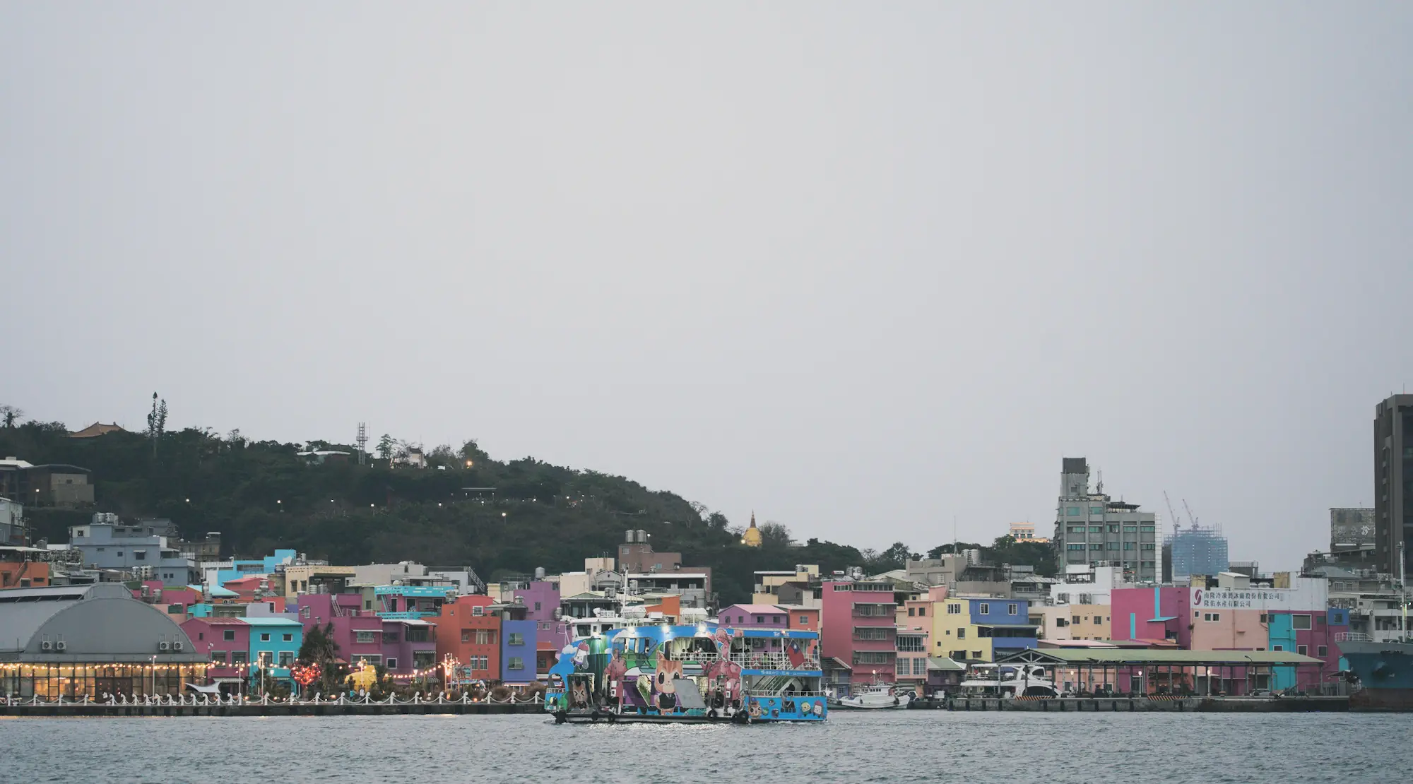 Low color and distant towers share the frame in a flatter, quieter harbor view.